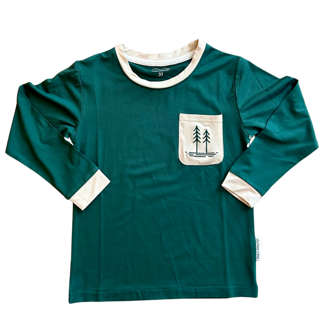 This green 260 GSM Bamboo long sleeve shirt is the perfect fall shirt. It is buttery soft and perfect for all the adventures for your little! It is 95% viscose bamboo and 5% spandex so it stretches for an easy fit.
