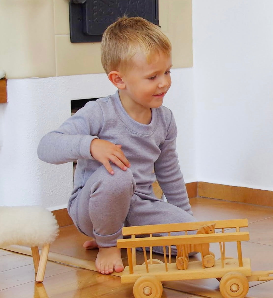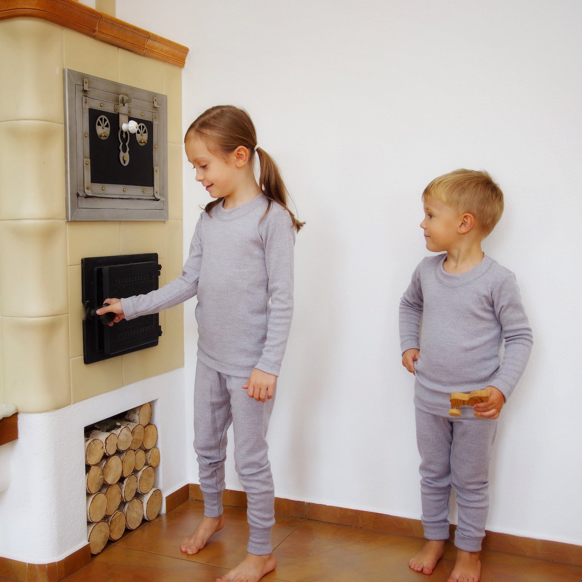 This thermal set is made from the finest 100% NON-superwash merino wool fibers. It is ideal for maintaining a consistent and comfortable environment for children's well-being, ensuring they stay cozy without overheating. The thermal base set provides insulation by trapping body heat while allowing moisture to escape, keeping your child warm and dry during sleep, playtime, or adventures.