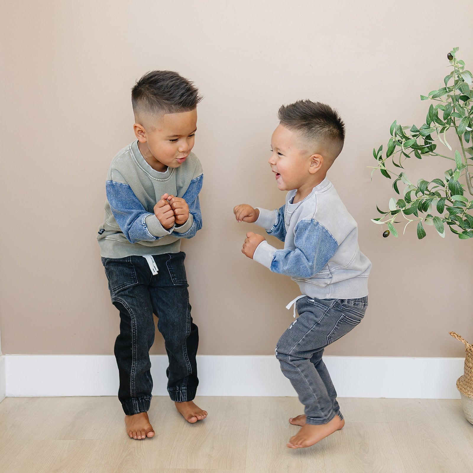 The Morgan Crew Neck is a playful twist on everyday style your little one will adore. Featuring an acid-washed body paired with cool denim sleeves, it creates a one-of-a-kind look that stands out. Soft ribbed cuffs and waist keep things cozy and comfy for all-day play. With subtle neutral colors, it’s easy to mix and match with any outfit—perfect for fun, effortless fashion.
