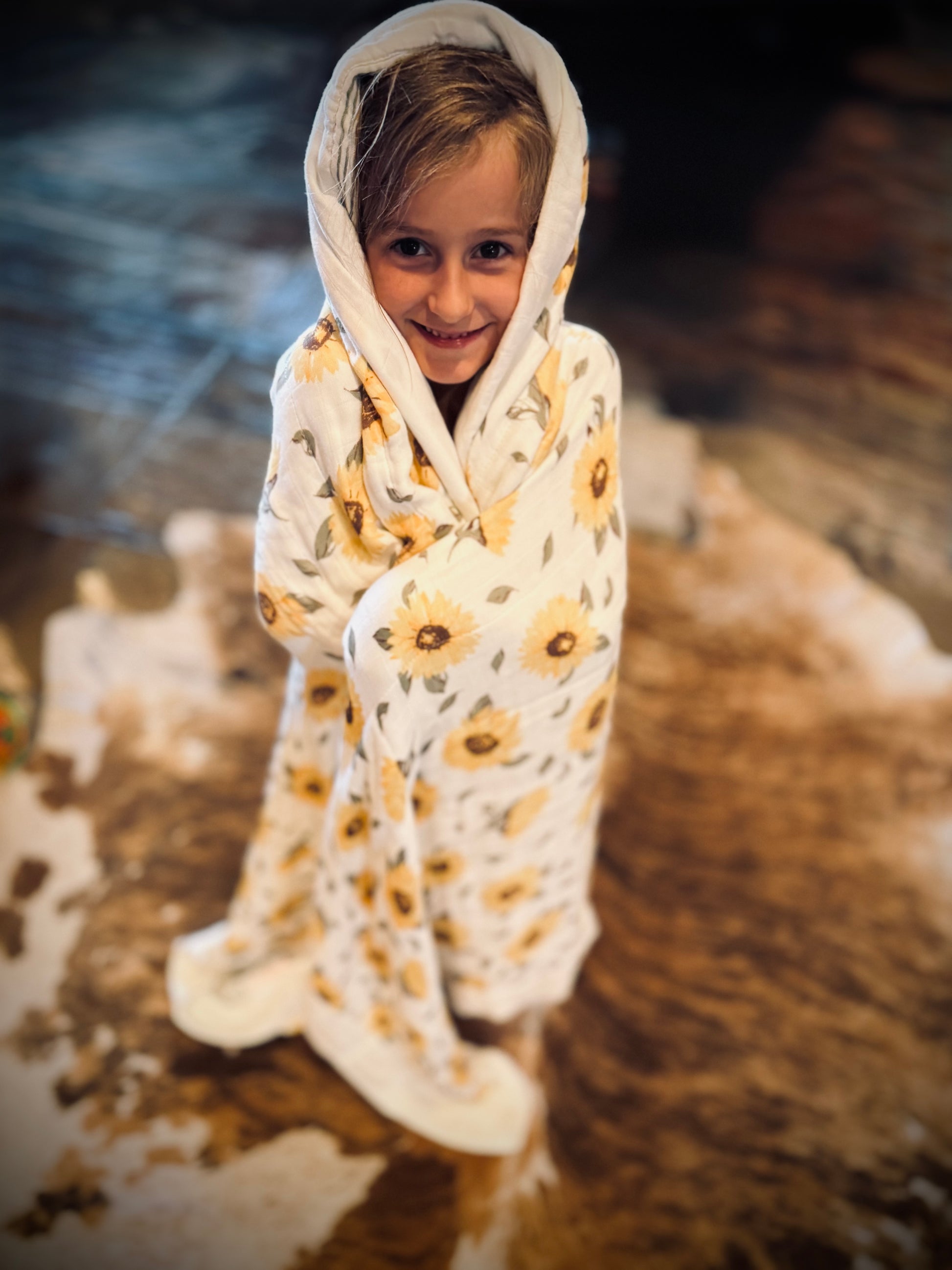 Sunflower Farm and Sage Green Stripe Throw Blanket